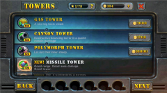 这里说明一下炮塔的配置问题。由于各个炮塔具体的功能不同,所以很难做出一个通用的说明。但是最常用的则是近距离攻击类炮塔(包含各种模式攻击)和迟缓炮塔(降低敌人的行进速度)