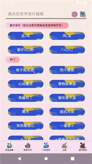 3、用户可以通过点击特殊符号操作,生成个性昵称。