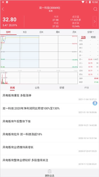 5、添加完成后即可查看该股票详情信息。