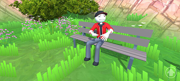 2、一开始你会出现在一片没什么人的草地上,左下角的按键能控制你的移动,右下角是跳跃键,滑动右侧屏幕就能调整视角方向,以便查看周边环境。