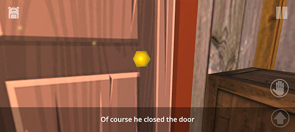 6、意识到自己被关起来后,移动到门口点击手掌图标,会触发对应的动作,但门无法打开,得另外寻找离开的办法。