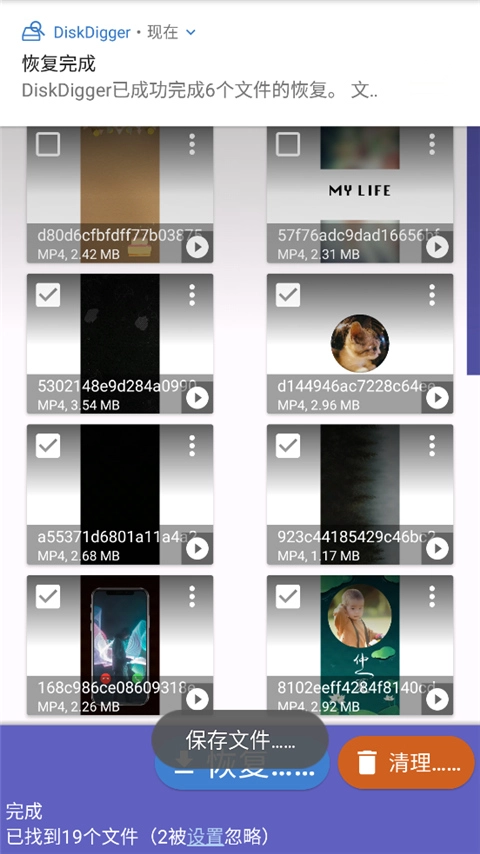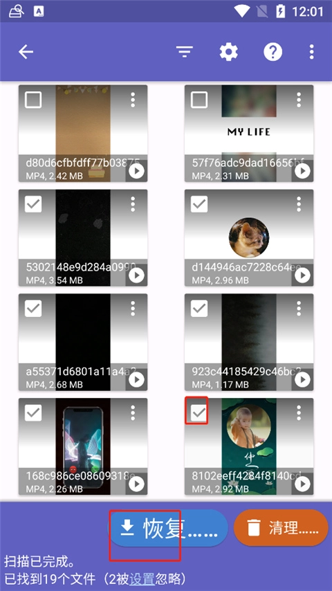 2、系统会自动扫描你手机上的可恢复的视频;