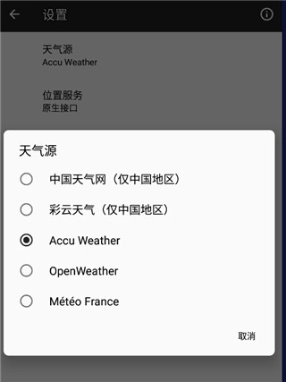 4、同时软件支持切换天气数据源。