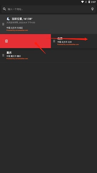2、选择想要删除的城市;
