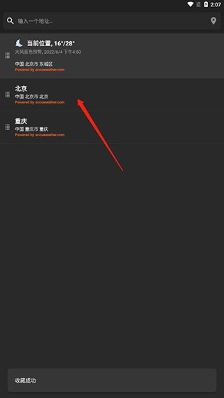 5、返回首页就可以看到该城市的天气啦!