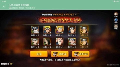 4、要是对招募结果不太满意,我们可以继续进行10连招募,直到抽到我们想要的忍者碎片为止。