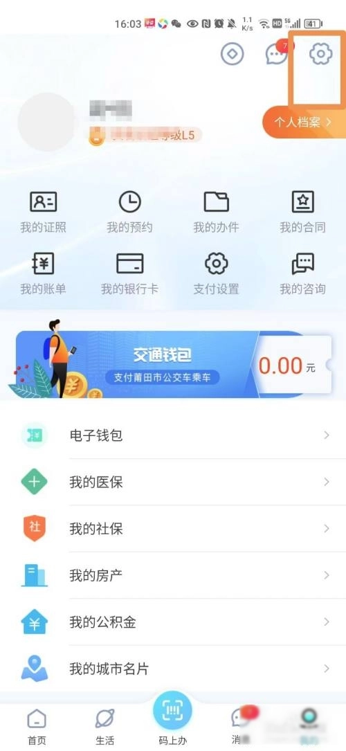 2、然后在新的页面点击设置图标进入。