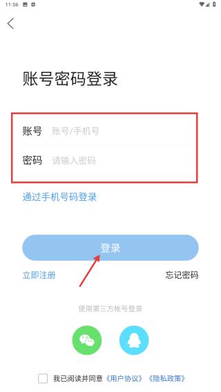 4、在登录页面,输入账号手机号和密码,点击登录按钮,完成账号登录操作。
