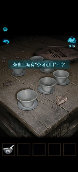 8、调查木桌发现上面写着茶可明目,现在虽然没有茶叶但是手边有现成的香灰就凑合一下吧。