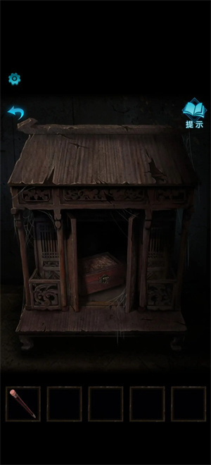 6、总之打开抽屉拿到了碗和勺子,查看神龛下面香炉提示里面有东西,那么用碗将香灰盛出来就好,然后拿到一碗灰和香灰铲。你看这个铲子它又长又扁,刚好用来把门栓挑起来。