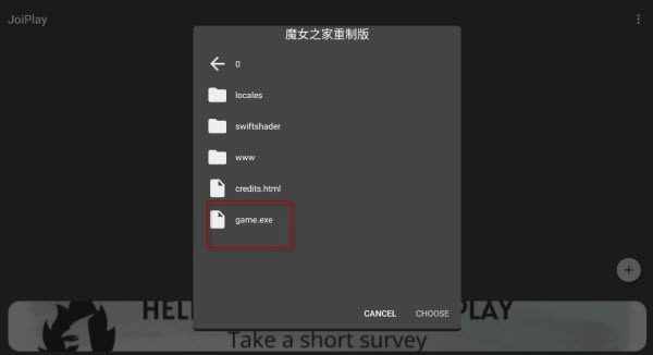 4、可执行文件选择CHOOSE,找到文件夹魔女之家重制版。