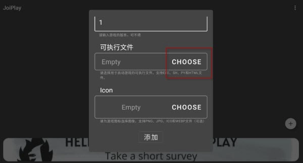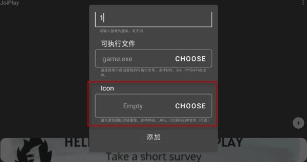 4、图标可以不选择或随意一张图,然后点击添加再打开游戏就可以了。