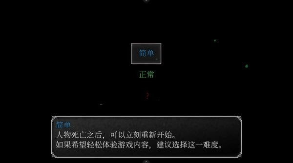 3、简单难度:人物死亡后,可以立刻重新开始。如果希望轻松体验游戏内容,建议选择这一难度。