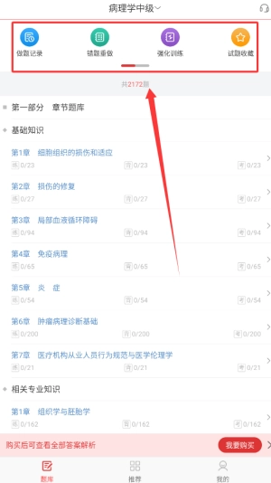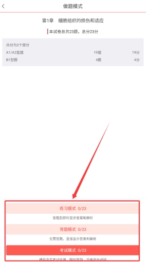 1、章节练习模式细分病理学各知识模块,用户可根据自身掌握情况自由选择训练范围,实现精准突破重点难点内容。