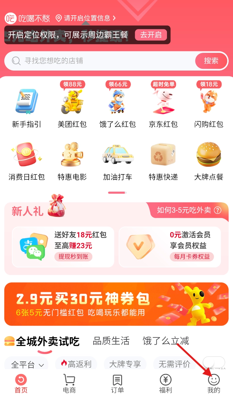 1、打开吃喝不愁”,找到底部导航栏,点击进入 “我的” 个人页面。