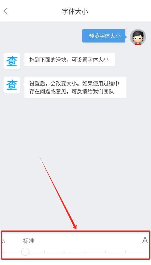 3、此时,底部会出现白色小圆块,左右滑动这些小圆块,即可轻松调节字体大小。