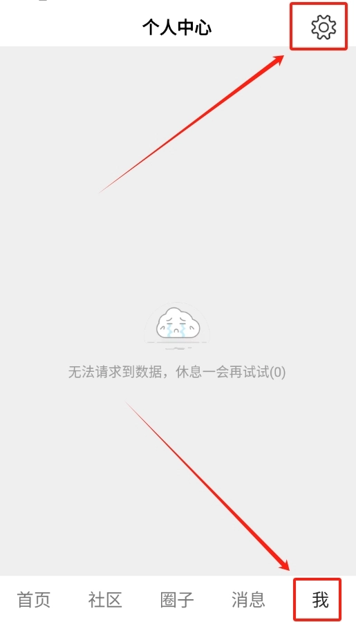 1、启动淮南查查网应用程序,进入“我的”界面,找到右上角的设置图标并进行点击操作。