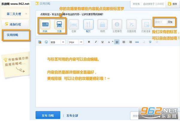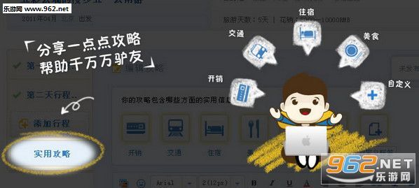 在游记攻略的 编辑 器里,还有一个很突出的部分,叫“实用攻略”。