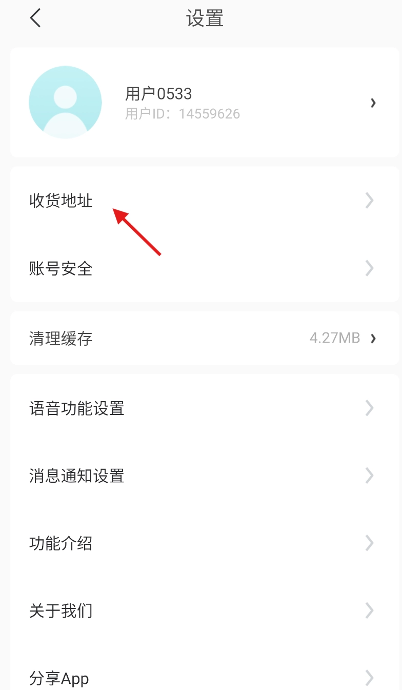 3、于设置界面中,找到并点击首个选项 “收货地址”,进入收货地址管理页面。