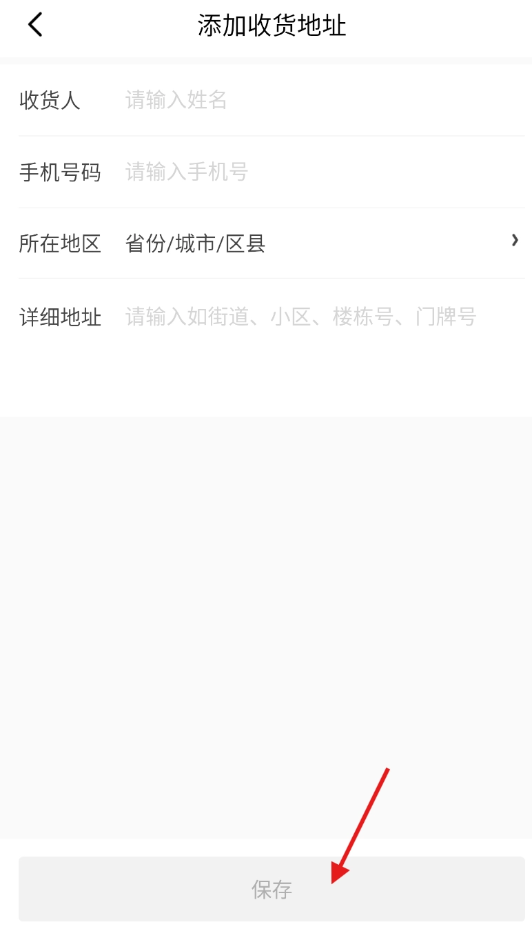4、在收货地址管理页面,点击 “新增收货地址” 按钮,进入地址信息填写页面。