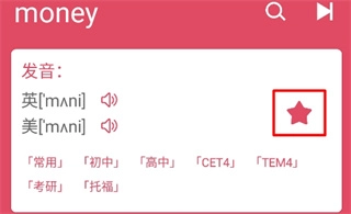 4.点击“收藏”图标可以将该单词收藏保存下来