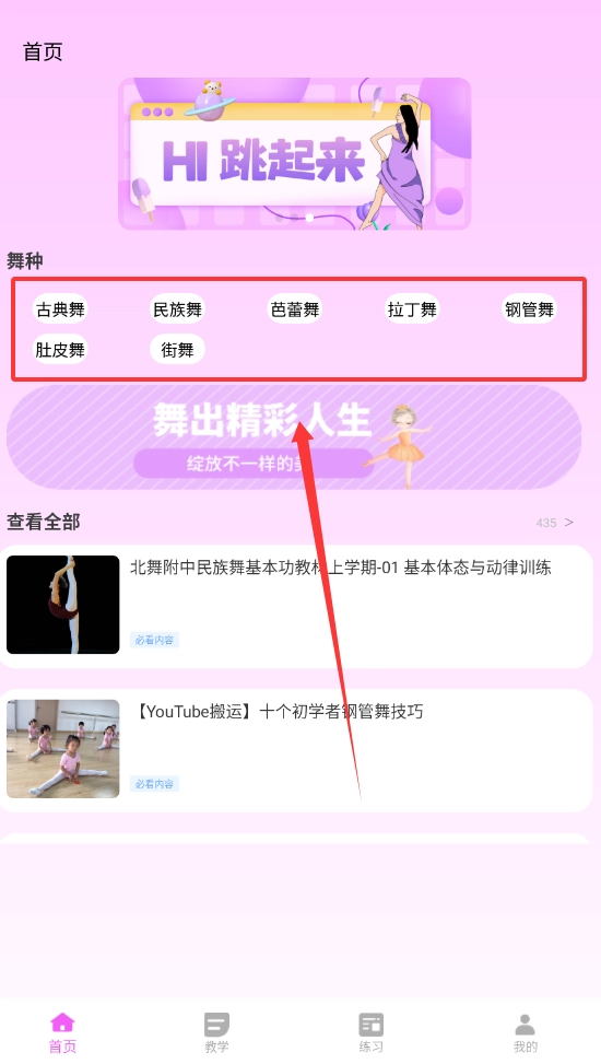 1、平台汇聚海量舞蹈资源,全面覆盖民族舞、街舞、拉丁舞、芭蕾舞等十余种主流舞种分类,无论用户是基于兴趣爱好还是学习需求,都能精准找到契合自身的内容。