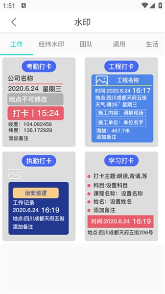 1. 支持多种标记模板,可定制时间、地点、企业名称等信息。