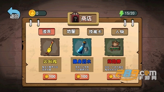 4.神秘商店可以用金币购买人物、道具、技能卡还有地图。