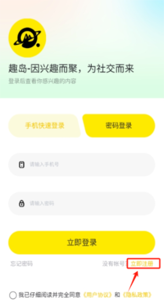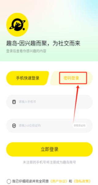2、切换至“密码登录”模式,点击页面中的“立即注册”选项。