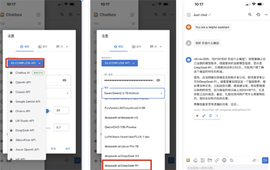 DeepSeek提供了多种编程接口(APIs),便于开发者将复杂的AI能力便捷地整合到已有的应用程序里。ChatBox则打造了相对简易的无代码/低代码操作环境,让缺乏扎实编程基础的用户也能迅速开发出具备功能的聊天机器人应用。
