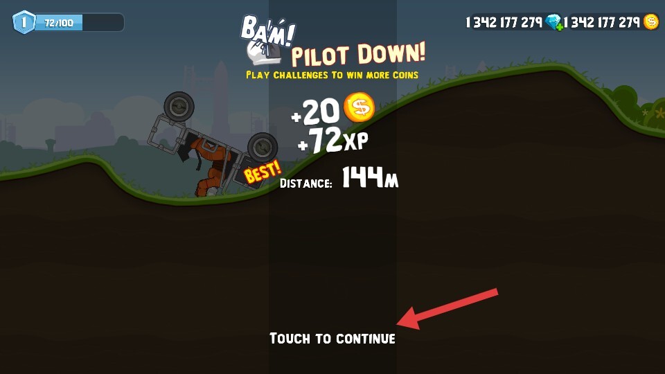 4、游戏结束后点击【Touch-to-continue】,即可开启下一次驾驶挑战。