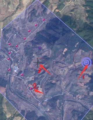 3、借助地图的区域划定与划线功能,将从自身所在位置到目标地点之间的范围圈定出来