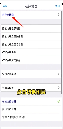 4、进入地图选择页面后,你会看到多种地图图层可供挑选,点击任意一个就能完成选择。除此之外,还能通过“自定义设置地图”来进行个性化配置。