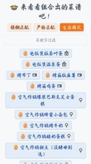 3、而所生成的菜谱也分为模糊、严格、生存三个模式