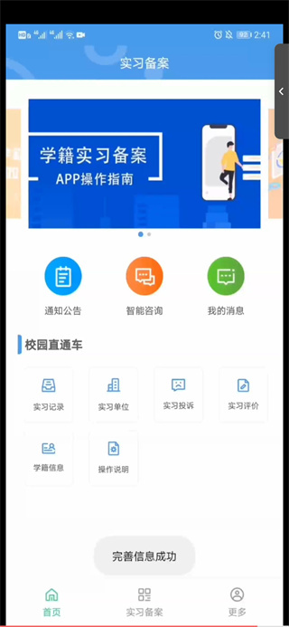 5、然后就进入学籍实习备案主页面了,接下来就可以根据提示操作。