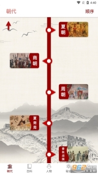 2、以中华上下五千年的璀璨历史文明为依托展开内容,若对哪个朝代感兴趣,点击红色指示标样式的入口即可进入阅读。