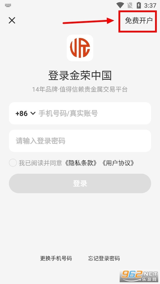 点击后会跳转到登录界面,点击右上角的【免费开户】