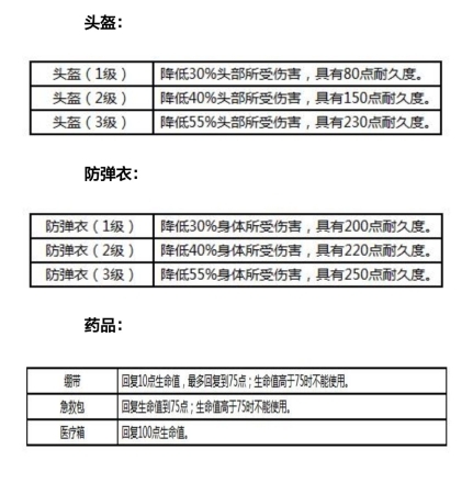 最后附上武器装备性能表,大家在捡装备的时候可以做个参考~