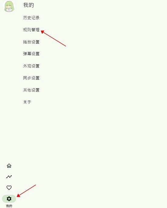 1、将压缩文件解压后,直接打开后缀为exe的播放器,点击左下角的设置选项,接着选择规则管理。