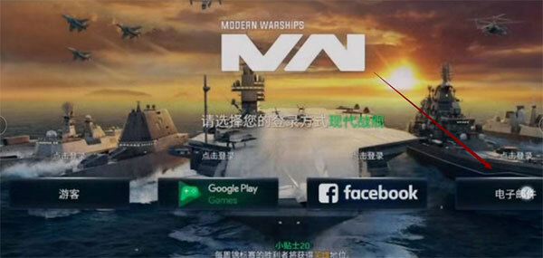 1、点击现代战舰:在线海战,进入游戏登录页面,可以看到有四个登录方式,这里以电子邮件登录为例,点击电子邮件登录。