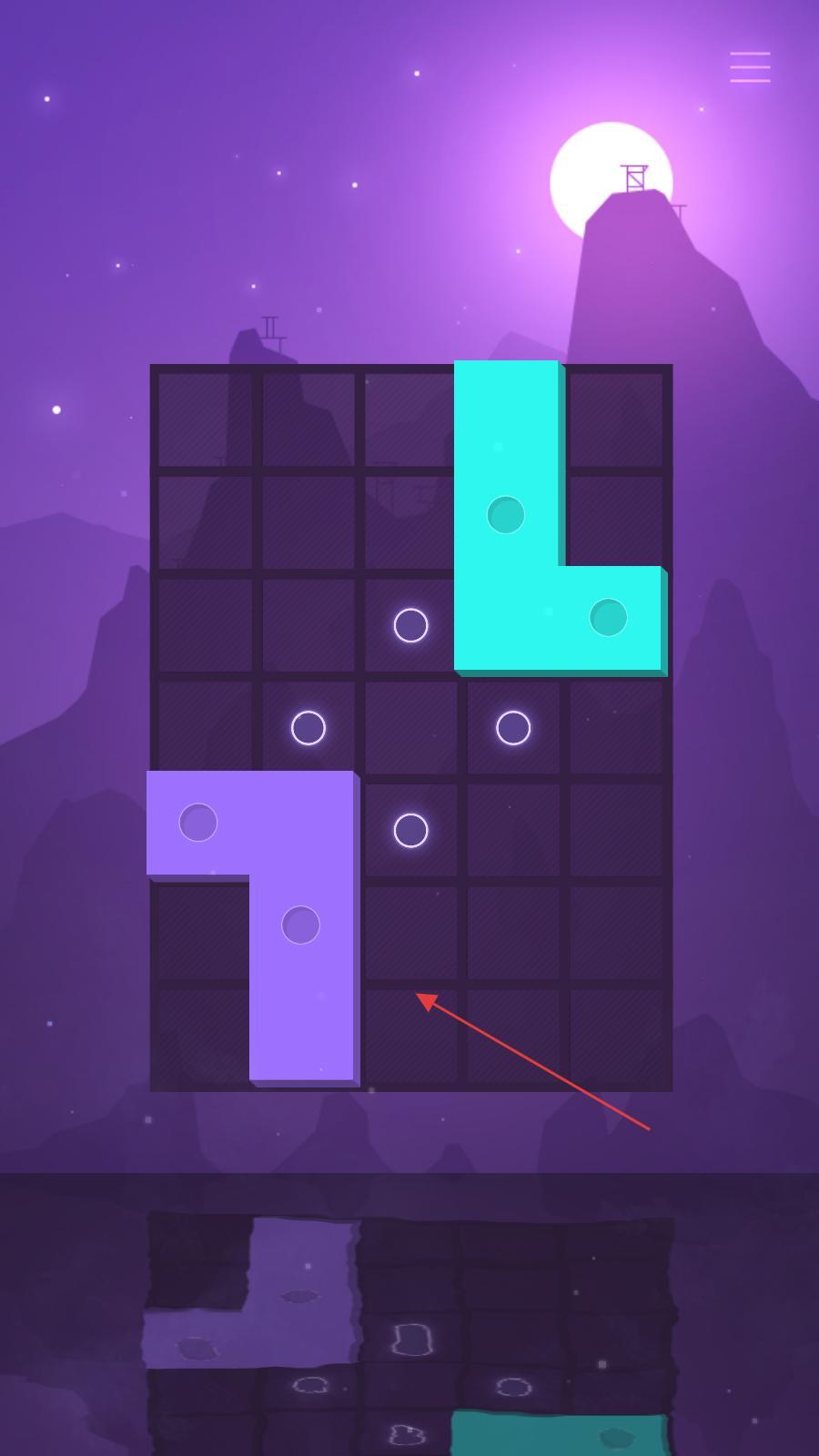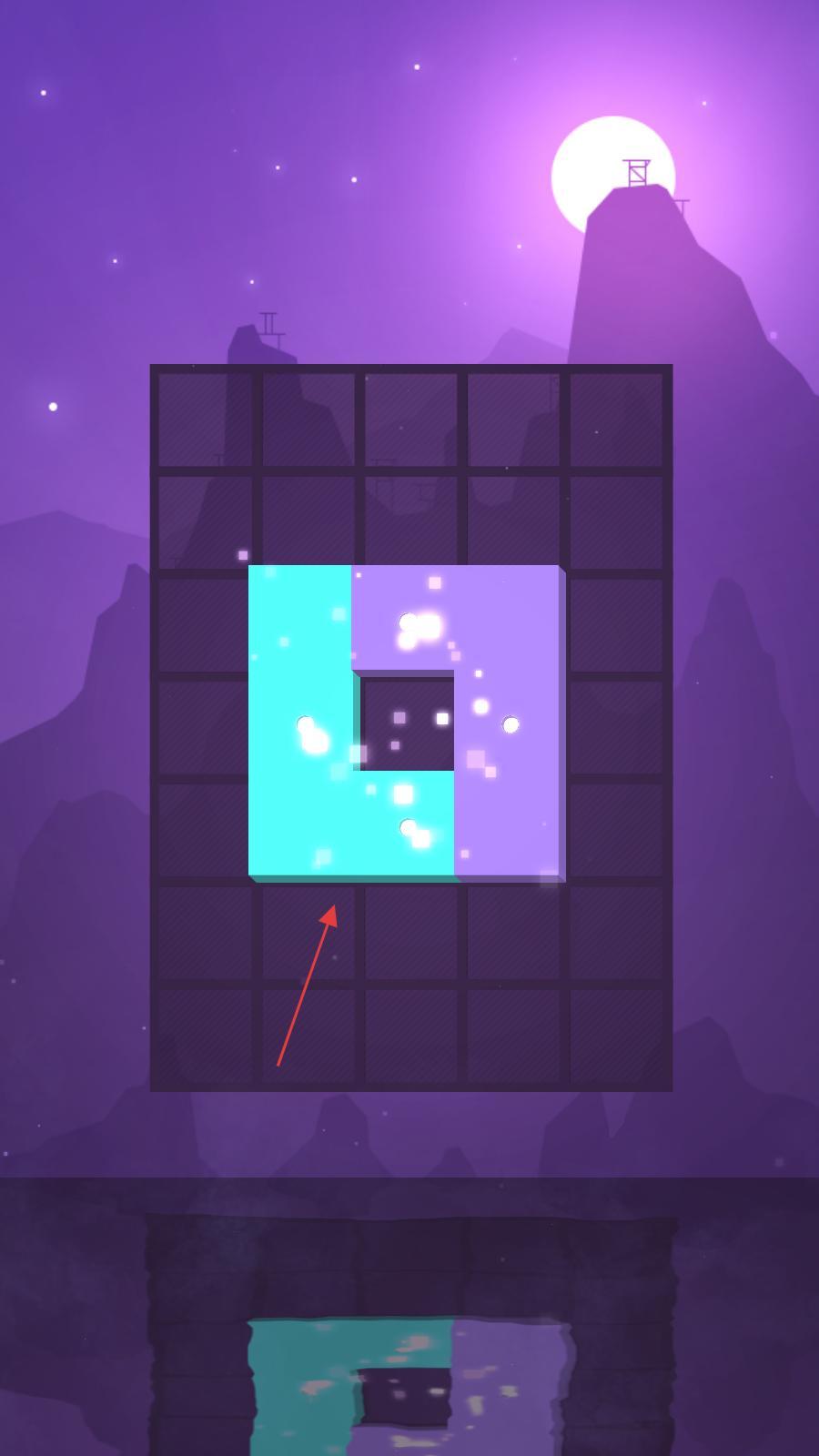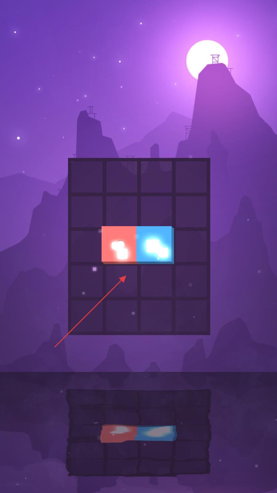4、移动青色方块和紫色方块,使它们精准拼接,形成完整的方块组合,此时会有光点特效出现,完成该关卡的方块拼接任务。
