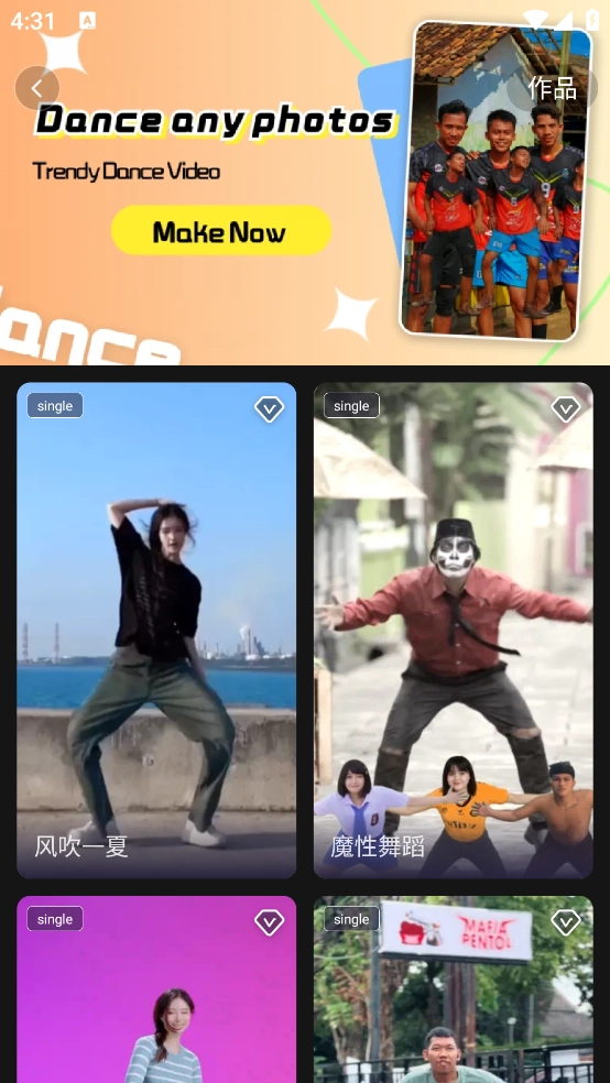 2.各类图片都能制作出跳舞视频之类的内容,使图片呈现动态效果。