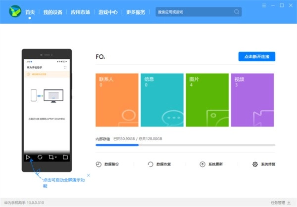 第二步、电脑安装华为手机助手/荣耀手机助理,通过助手检测手机与电脑是否连接成功。