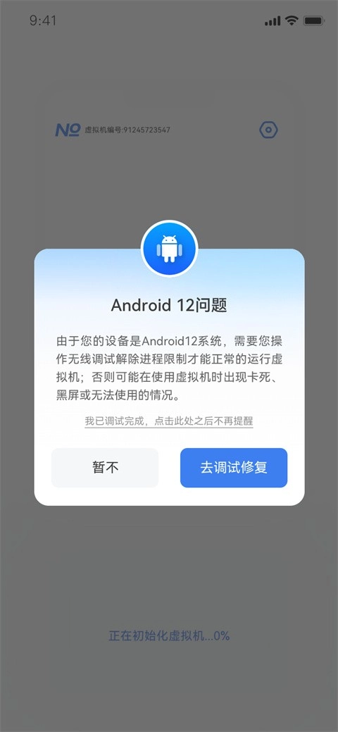 第五步:启动葫芦侠虚拟机,点击“我已调试完成,点击此处之后不再提示”即可。(若此前已点击过该提示、当前无此弹窗,则可忽略此步骤)