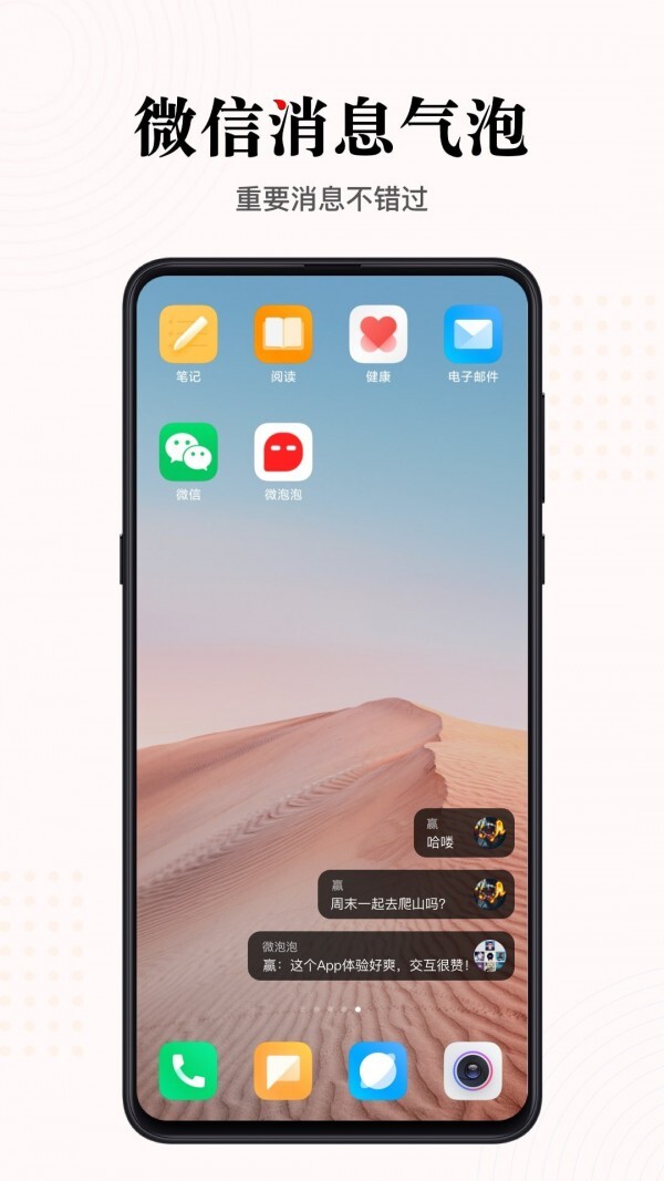 在任意界面收到微信,都会出现消息气泡,快捷查看回复。