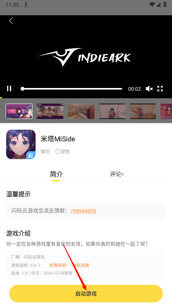 4、进入详情页,点击"启动游戏"。