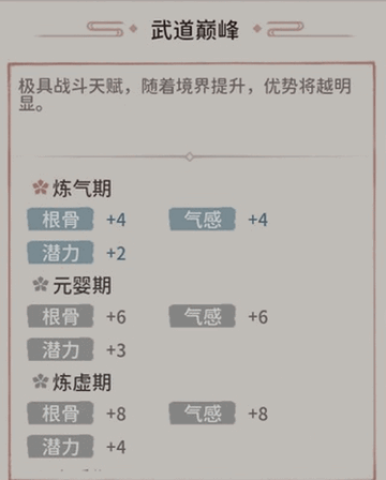 在元婴前,根骨和气感这两个属性尤为重要,建议招收四个重点培养的六边形战士。