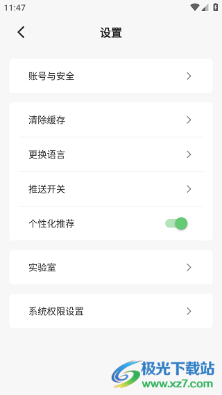 2、页面展示的个性化推荐这里显示是开启状态。