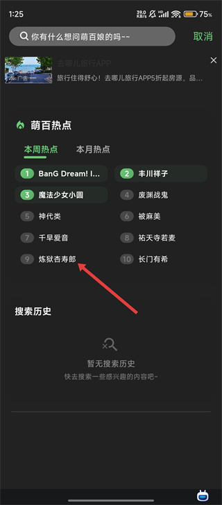 2、在搜索页面,你可以选择【萌百热点】板块中的热门条目,像【炼狱杏寿郎】这类,就能快速跳转到对应的内容页面啦。