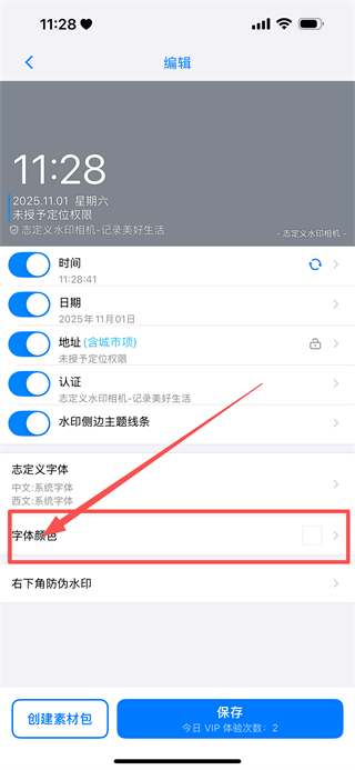 1、在相机页面,点击编辑水印,进入编辑页面。